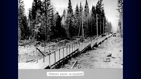 Лежневая дорога на промбазу. 1958г Изображение. Точная дата неизвестна, ориентировочно 1958 год