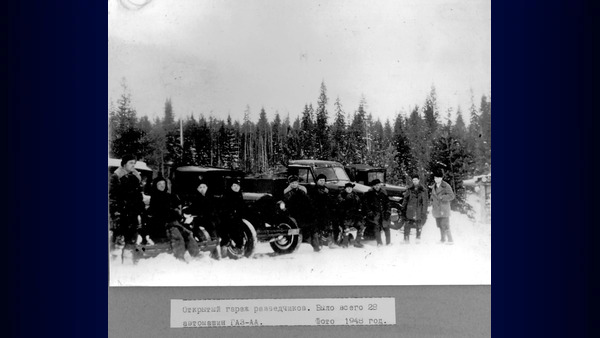 Качканарская ГРЭ. Открытый гараж разведчиков 1948г Изображение. Точная дата неизвестна, ориентировочно 1948 год