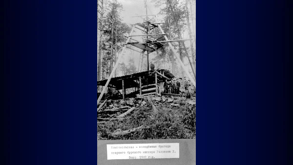 Качканарская ГРЭ. Комсомольско-молодежная бригада ст.бурового мастера Халикова Х. 1949г Изображение. Точная дата неизвестна, ориентировочно 1949 год