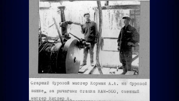 Качканарская ГРЭ. Старший буровой мастер Корман А.А., сменный мастер Кислер А. Изображение. Точная дата неизвестна, ориентировочно 1951 год