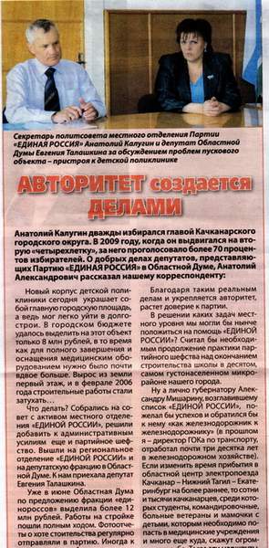 Да плевать на лдпр, вы что, не читаете? Во всей области (тираж этой газетки всего то 500000-ПОЛМИЛЛИОНА!) пипл читает про то, как оффигительно ЕР ЛЕТОМ 2009 года в каком-то там Качканаре выделила 12 миллионов на пристрой к детской поликлиники! Какая замечательная партия!