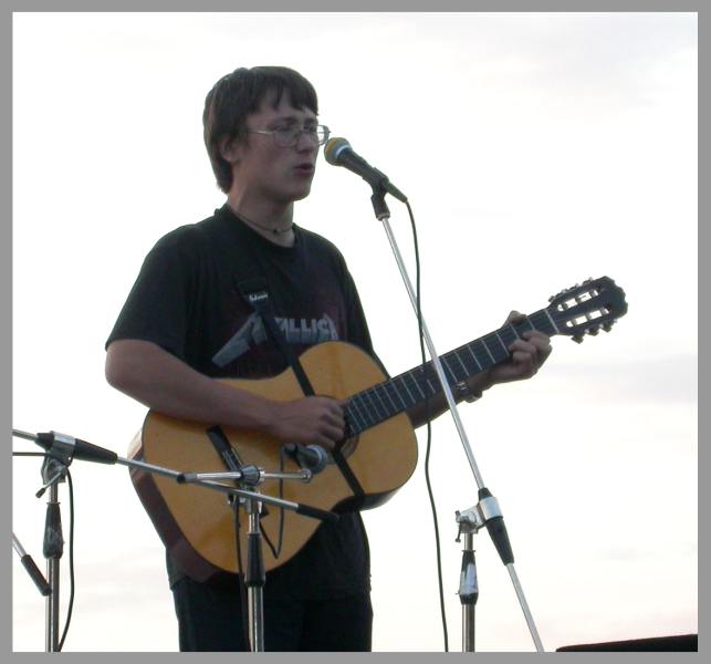 Оригинально : футболка MetallicA и бардовский фестиваль. Похоже мальчик чего-то попутал...