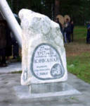 Кому-как, а мне этот камешек, установленный в честь Дня Строителя рядом с "первыми палатками" издалека напоминает исключительно надгробие...