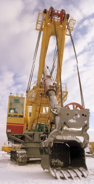 Нет, я могу ошибаться. Но если за 25-35 тысяч, то сгонять на месяц можно было бы ?..уж больно фотки классные там получаются. Да! добавим еще, что этот экскаватор устройством кабины смахивает на десятикубовник, сделан на Ижорском заводе, в основном изготавливающем подводные лодки. Управляется джойстиком на тиристорном управлении, который разработали и обслуживают парни из Робитэкса. Высота стрелы 15 метров, толщина канатов 39 мм., усилие на подъем ковша 80 тонн, за один раз переносит до 30 тонн руды.