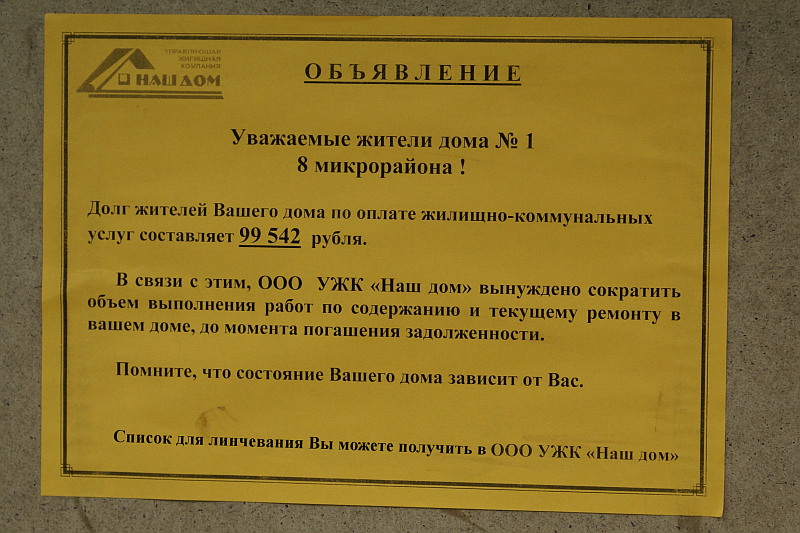 А у нас недавно на подъезде как раз таки и висел список должников-фамилия,кваритира,сумма...Жаль не успели сфоткать...тоже блин..."позорный список" понимаешь ли..К чему это все?"Объем работ"...ха!есть ли эти работы??кто видел их-скажите,я тоже присмотрюсь,может увижу!
