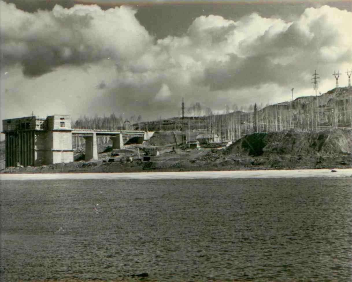 2026-01-15 17:30 Качканар РетроВодозаборное сооружение оборотного водоснабжения совмещено с насосной станцией. 1963г Изображение. Точная дата неизвестна, ориентировочно 1963 годИсточник:/archive/id397/