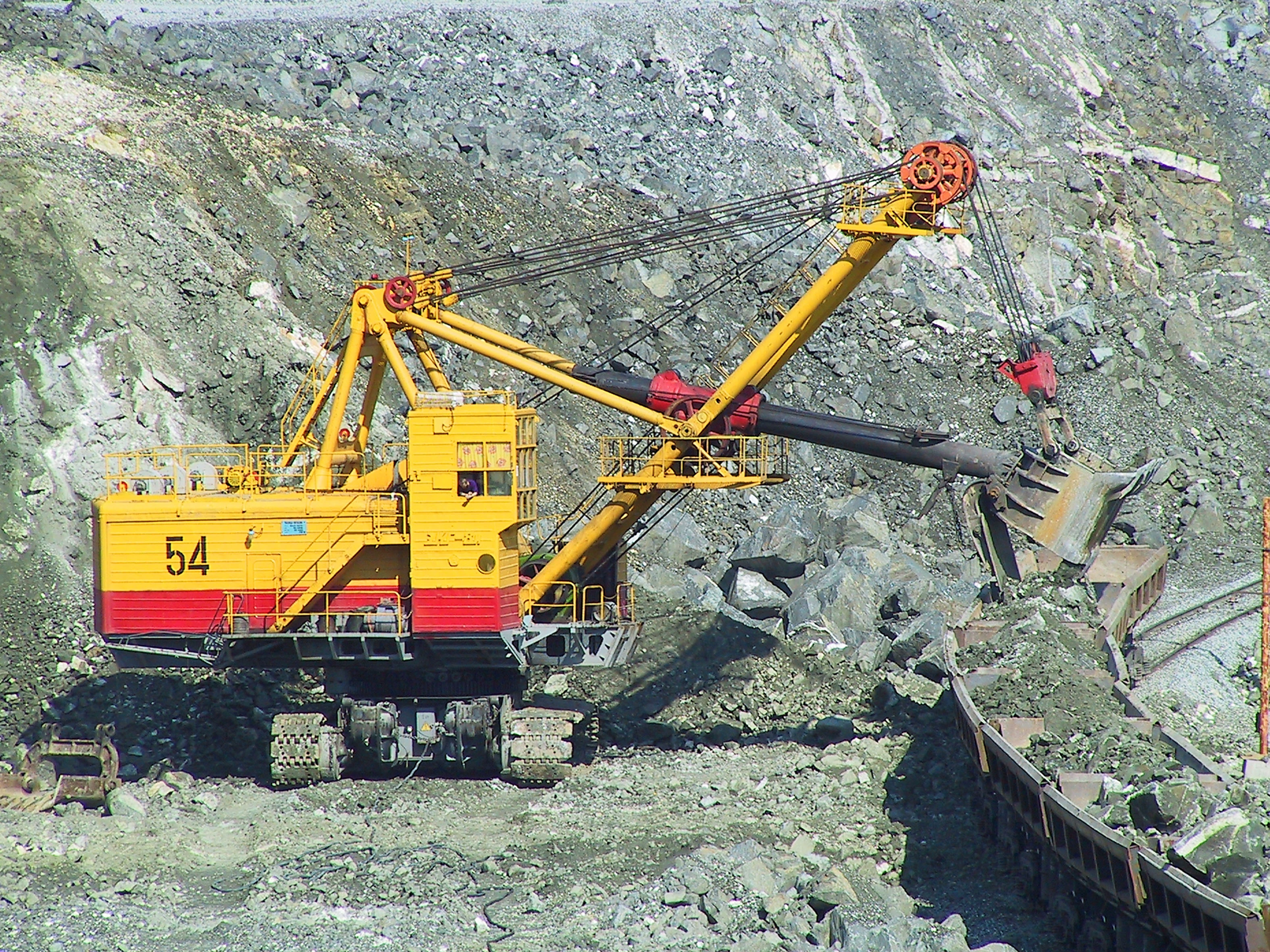 2026-02-18 17:30 Качканар Ретро2003 год. Погрузка руды на главном карьере. Изображение. Точная дата неизвестна, ориентировочно 2003 годИсточник:/archive/id620/
