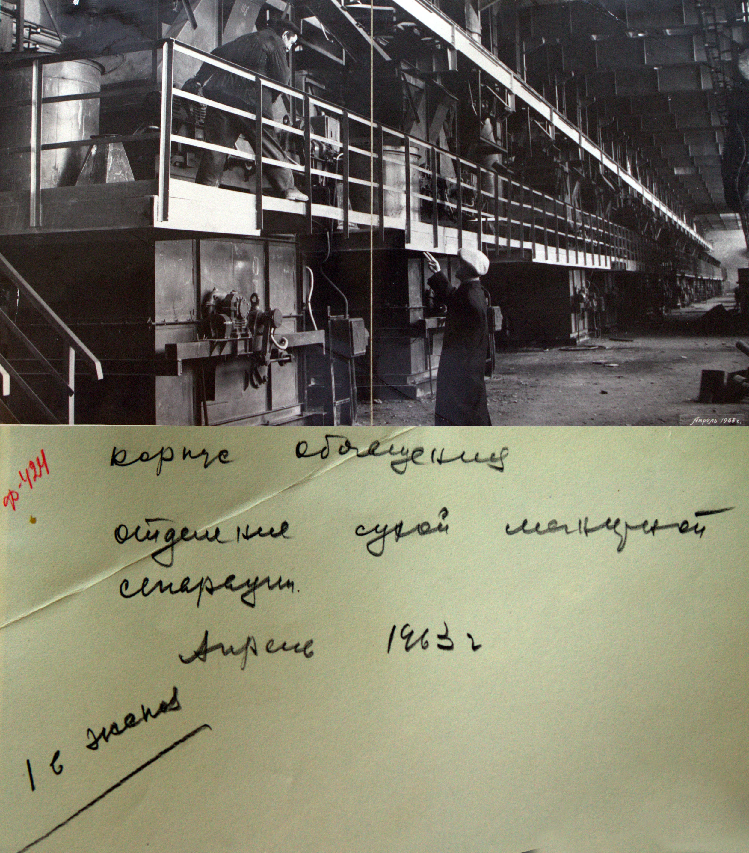 2026-02-23 17:30 Качканар РетроОбщий вид на сепараторы в пролете сухой магнитной сепарации главного корпуса. 1963г Изображение. Точная дата неизвестна, ориентировочно 1963 годИсточник:/archive/id387/